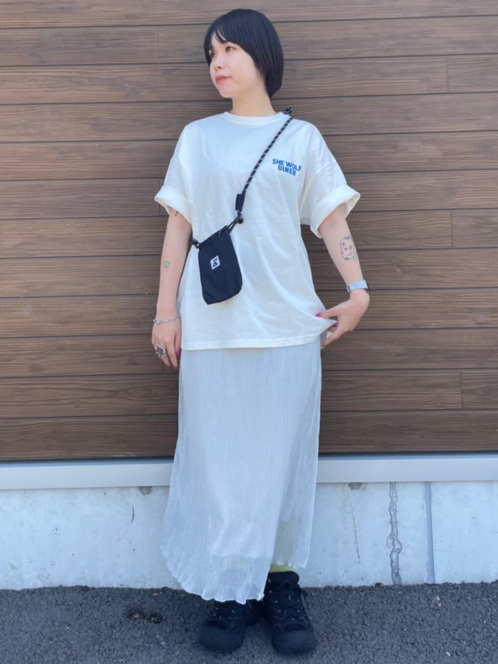 FREAK'S STORE HEAD OFFICE MEN(FREAK'S STORE OFFICIAL)のTシャツ/カットソー「限定展開 SHE WOLF DINER×FREAK'S STORE/シーウルフダイナー 別注 ビッグシルエット バックプリントTシャツ/WOLF」を使ったコーディネート