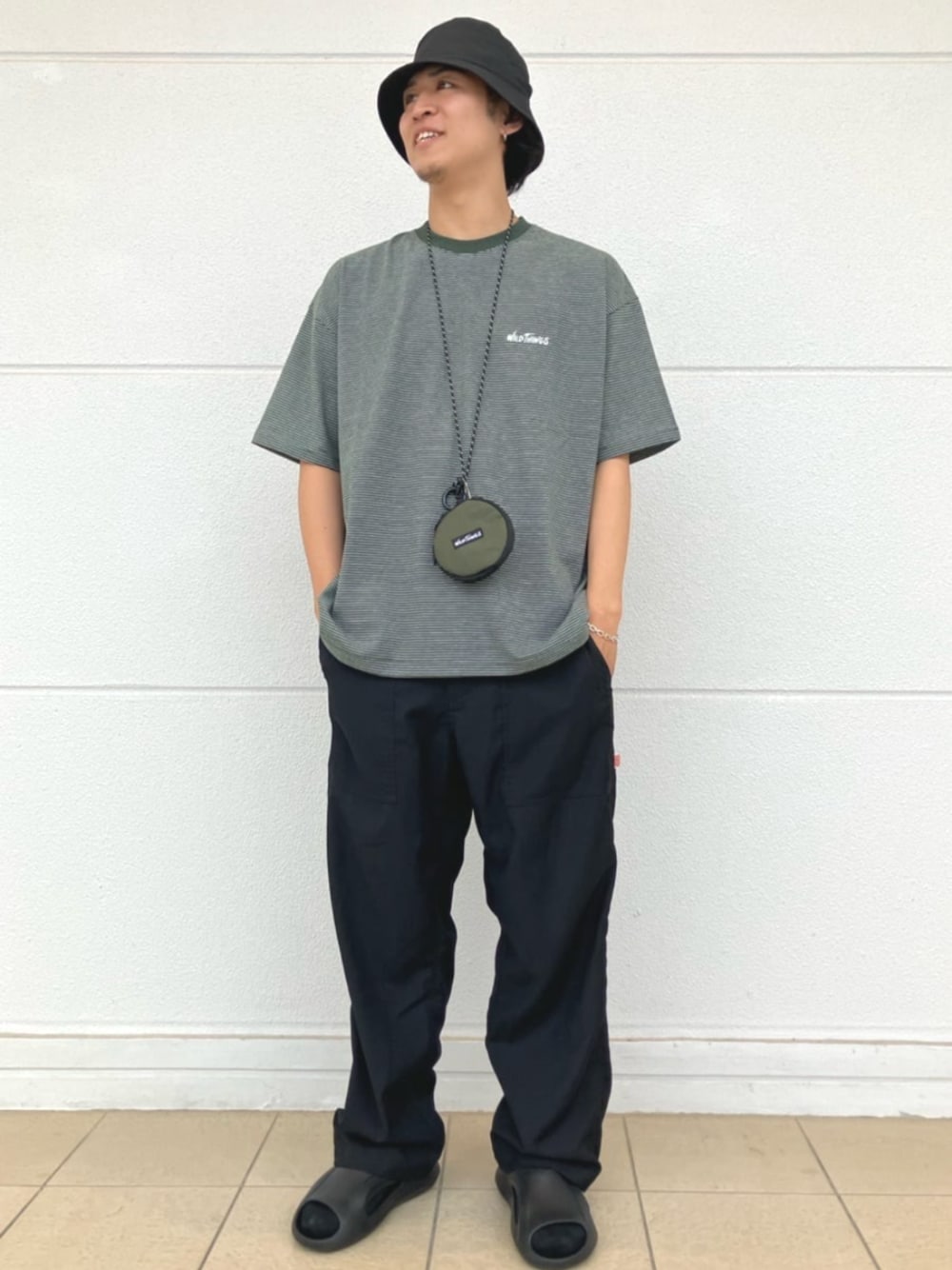 FREAK'S STORE HEAD OFFICE MEN(FREAK'S STORE OFFICIAL)のスラックス「HINSON/ヒンソン ワイドテーパードシルエット ウェービングベルト ベイカースラックスパンツ/クライミングパンツ/スラックス/ベイカーパンツ/ワイドシルエット」を使ったコーディネート