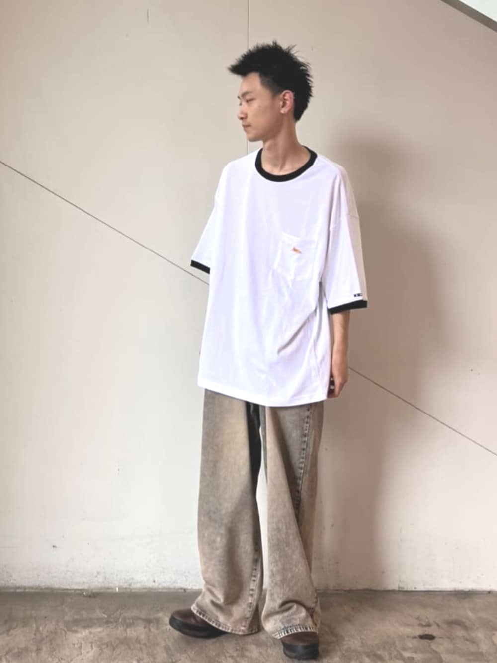 FREAK'S STORE HEAD OFFICE MEN(FREAK'S STORE OFFICIAL)のデニムパンツ「限定展開 MR HEARTS/ミスターハーツ VINTAGE WASH WIDE STRAIGHT DENIM」を使ったコーディネート