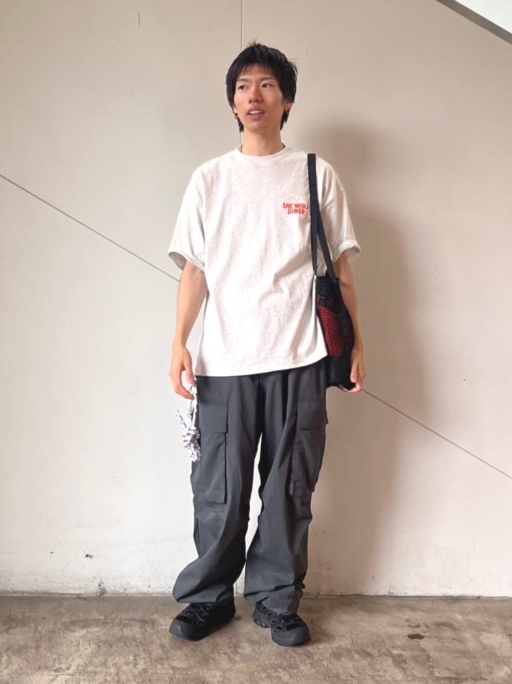 FREAK'S STORE HEAD OFFICE MEN(FREAK'S STORE OFFICIAL)のTシャツ/カットソー「限定展開 SHE WOLF DINER×FREAK'S STORE/シーウルフダイナー 別注 ビッグシルエット バックプリントTシャツ/WOLF」を使ったコーディネート
