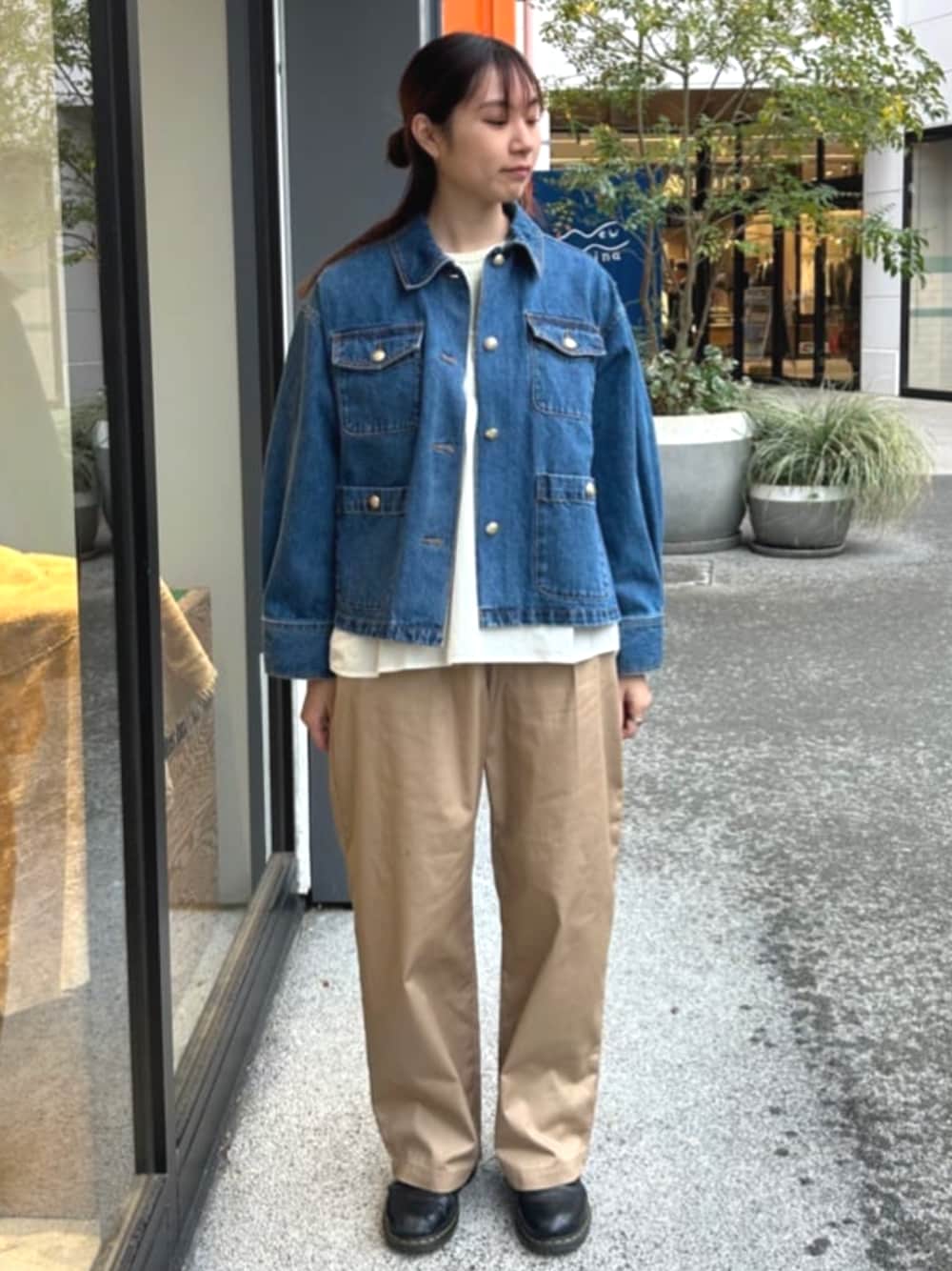一見メンズライクなコーデですが、インナーはフェミニンなトップスを合わせました!