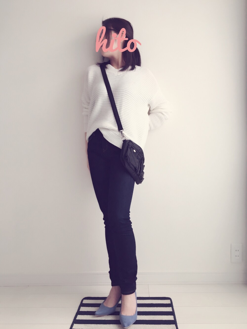 白✖黒 シンプルコーデ コットンニットとPORTERでカジュアルに 春色のキレイなブルーのカラーパンプスで外しました★
