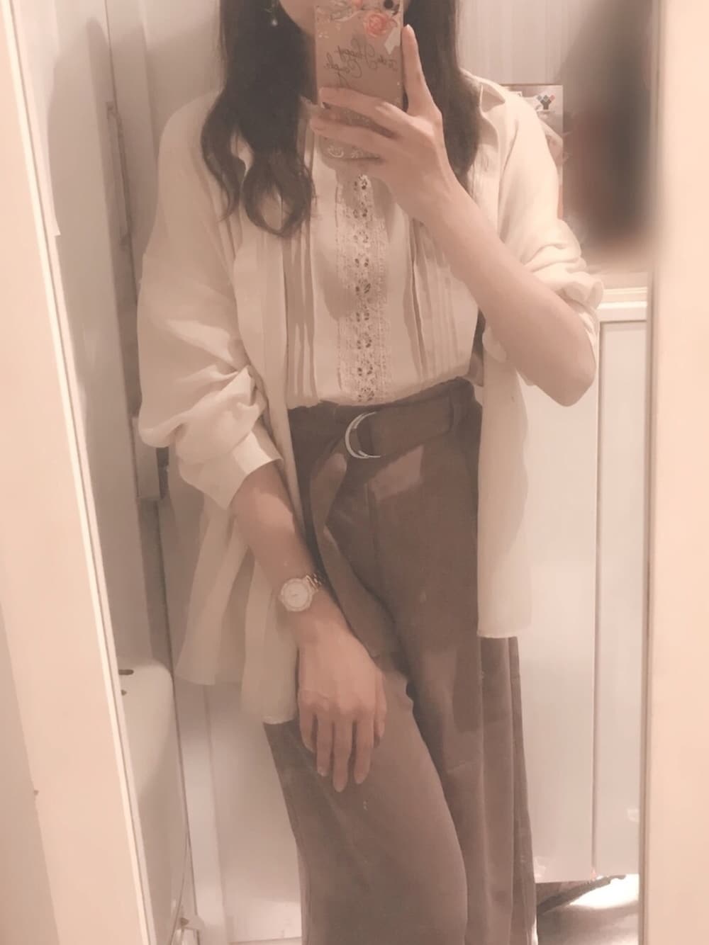 GUメインのシンプルコーデ レースのカットソーでフェミニンさを取り入れつつ, 同系色のパンツとオーバーサイズのシアーシャツで カジュアルさを投入して甘くなり過ぎないように 全体的に大人可愛い印象作りを心がけました。 プライベートで食事に行く時に着て行ったら 上品で大人っぽいと褒められました∩^ω^∩