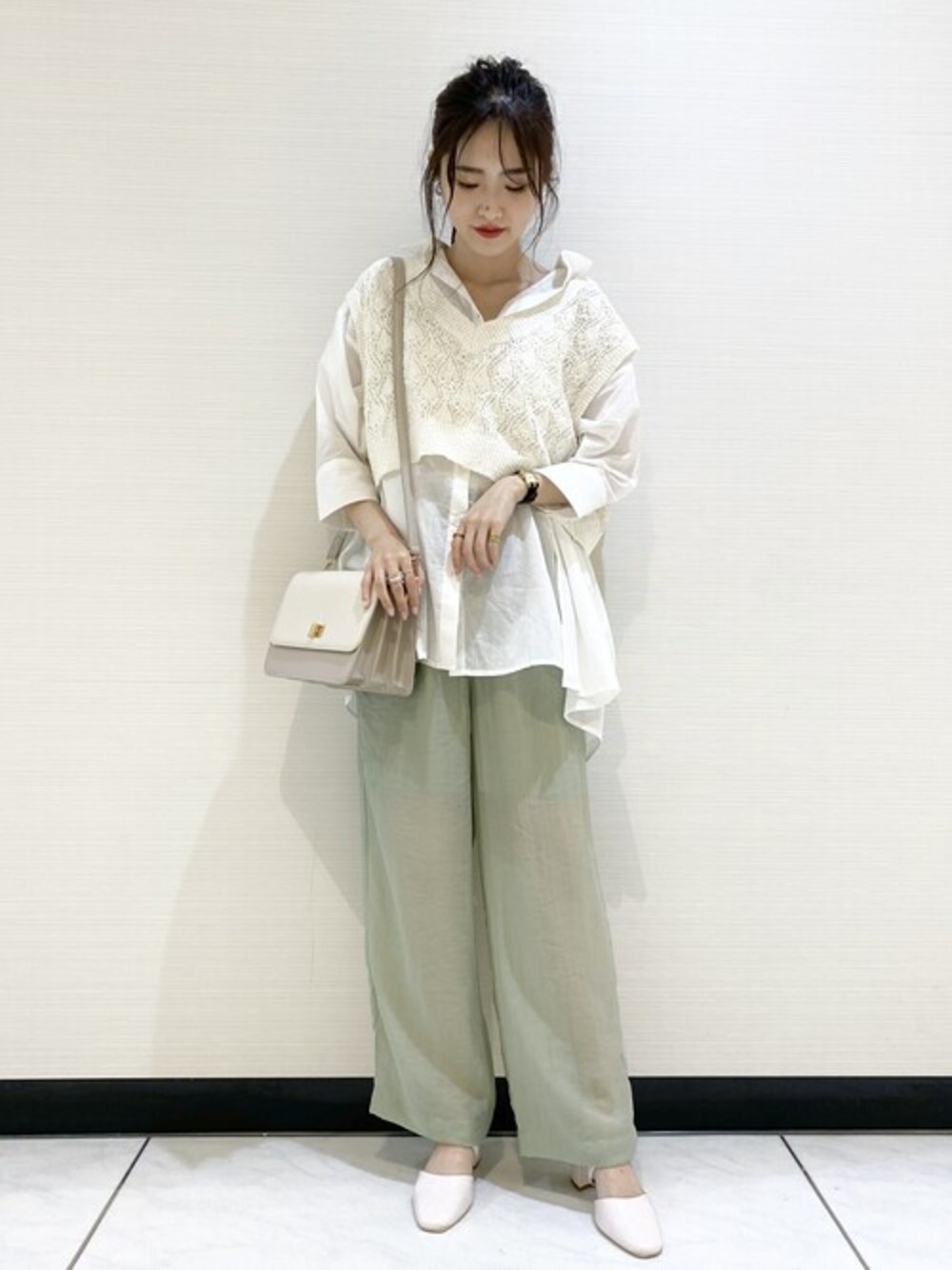 ホワイト×グリーンの爽やか梅雨コーデ♪
