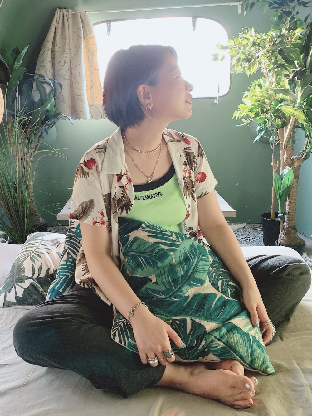 ボタニカルを意識した夏のお出かけコーデ グランピングに行きました🌴⛺️