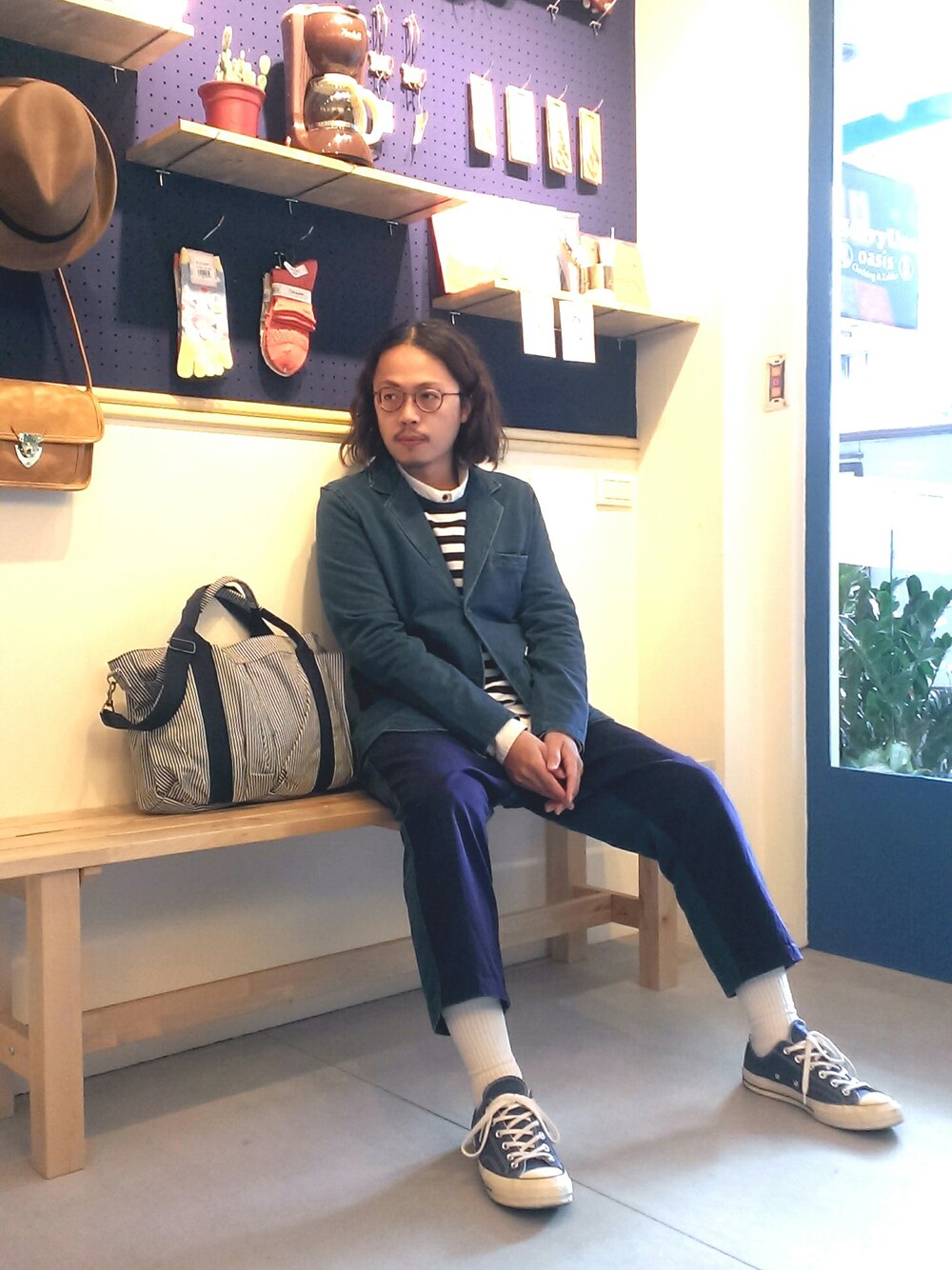 利用indigo藍染西裝外套展現輕鬆略帶成熟的大人風穿搭。