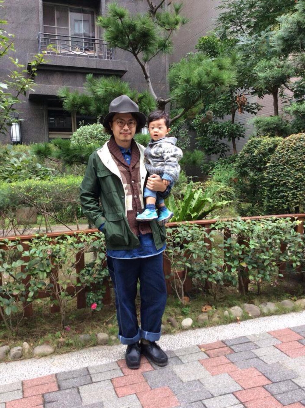 很久沒和小朋友一起出門,所以一起帶點復古感的outdoor風格,一直是我喜愛的一種模式,然後選擇冬季限定的cowichan knit的粗針織毛衣穿著,也很適合開始進入冬季的氣候。寬鬆的畫家褲是最近經常使用的份量感單品,為了balance整體感,而選擇clarks的厚底短靴,褲管隨意捲起到適度露出襪子的作法,是讓笨重下半身有層次的做法。