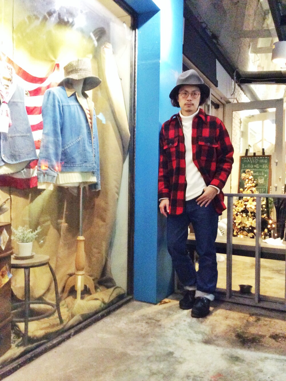 選擇美國古著老物混合新品穿搭一直是我很喜歡的搭配方式,bafflo check的格紋很アメカジ但又不太像是台灣目前喜歡アメカジ的朋友習慣使用的單品。全厚質毛料相當的保暖,穿在高領外也好,當CPO襯衫穿也很推薦。 最近都是穿寬鬆褲子,會不會之後再也穿不回去合身的褲子呢?有點擔憂(笑)