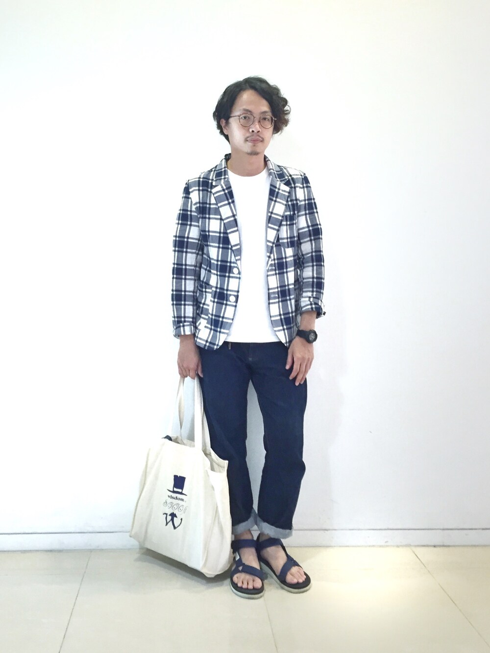 格紋類的單品在以往總是秋冬比較活躍, 但從去年開始有著清爽、清涼感覺的格紋, 也逐漸佔據夏季snap的版面^_^ 材質的選擇是關鍵。 比起一般襯衫更為輕薄好披著的棉質製成的格紋西裝外套,介於正式和休閒的中間界線。 內搭7.1盎司的口袋素T就可以隨意出門。 輕鬆的look比起皮鞋更適合運動涼鞋。 你覺得勒XD