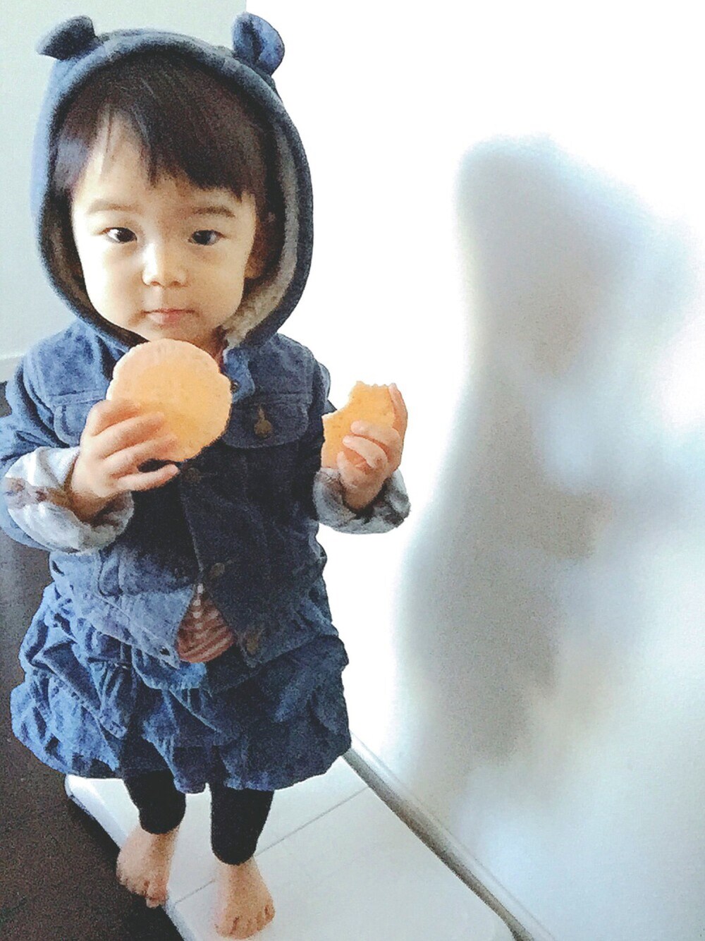 今日は帽子被りたくないんですアタチ。 髪結ばせてあげたんだからいいでしょ。 えびちびダイスキ♡