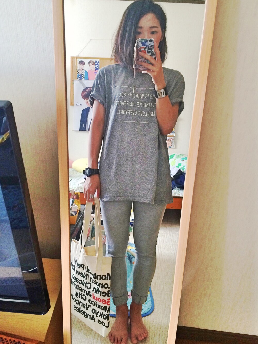 グレーな1日(笑) とりあえずシンガポールに行くのに必要なものを買いに行きました! すごーくラフな格好です。 でも、こーゆー格好好きです。