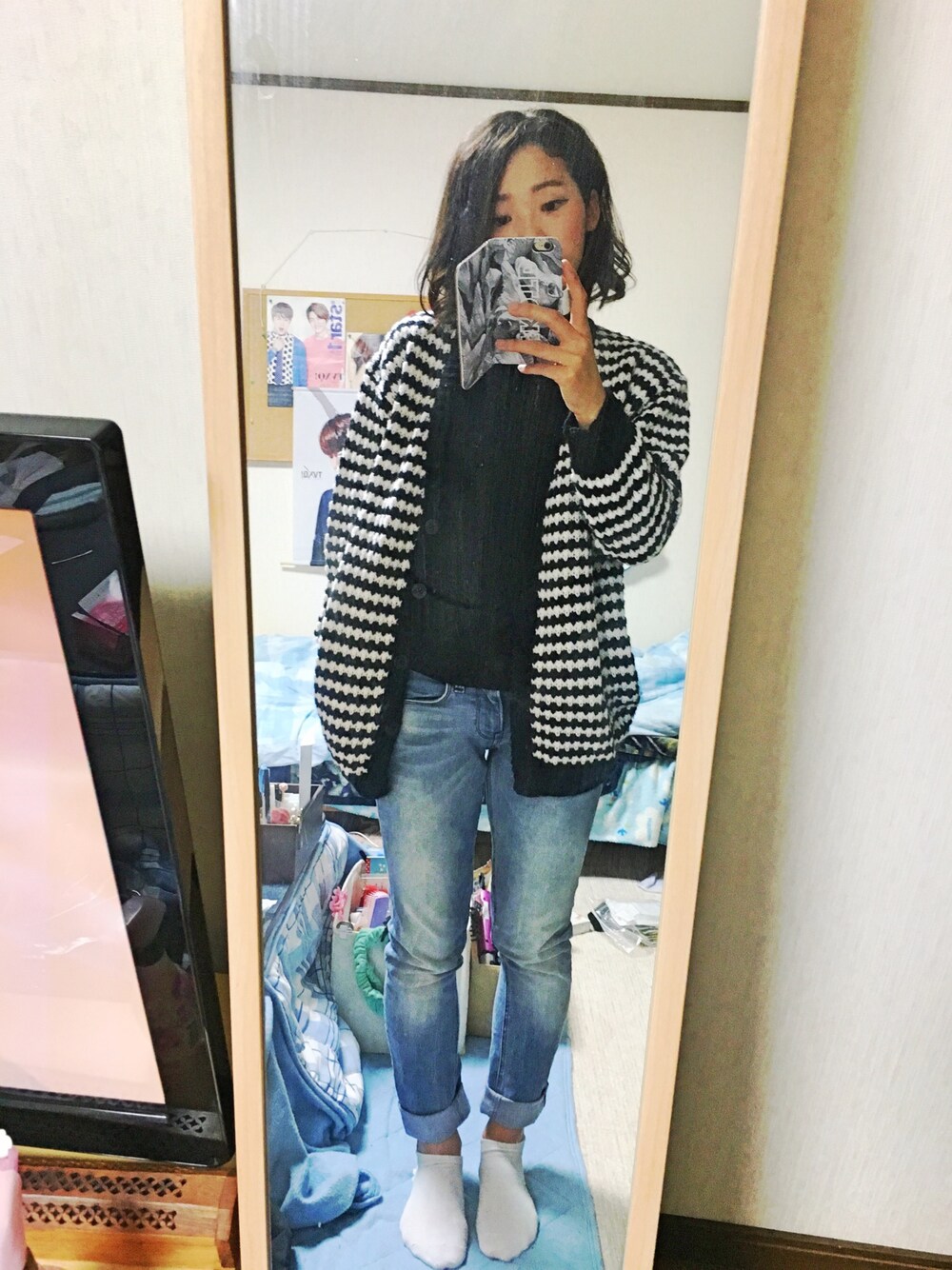 hitomiのカーディガン/ボレロ「BORDER LOOSE Knit CDK」を使ったコーディネート
