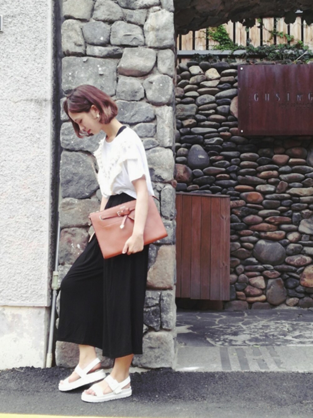 ボヘミアンなフリンジデザインのTシャツにはミディ丈のワイドパンツとあわせて大人カジュアルに☆ リラックス感のあるゆるっとスタイルは大人レディな雰囲気を出してくれるからGOOD!! スポーティなサンダルをはいて完成!