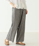 着心地抜群のリネンセットアップは、柄物だと尚更パジャマに見えそうで不安…。そんな時は小物をレザーにして引き締めてみましょう◎
