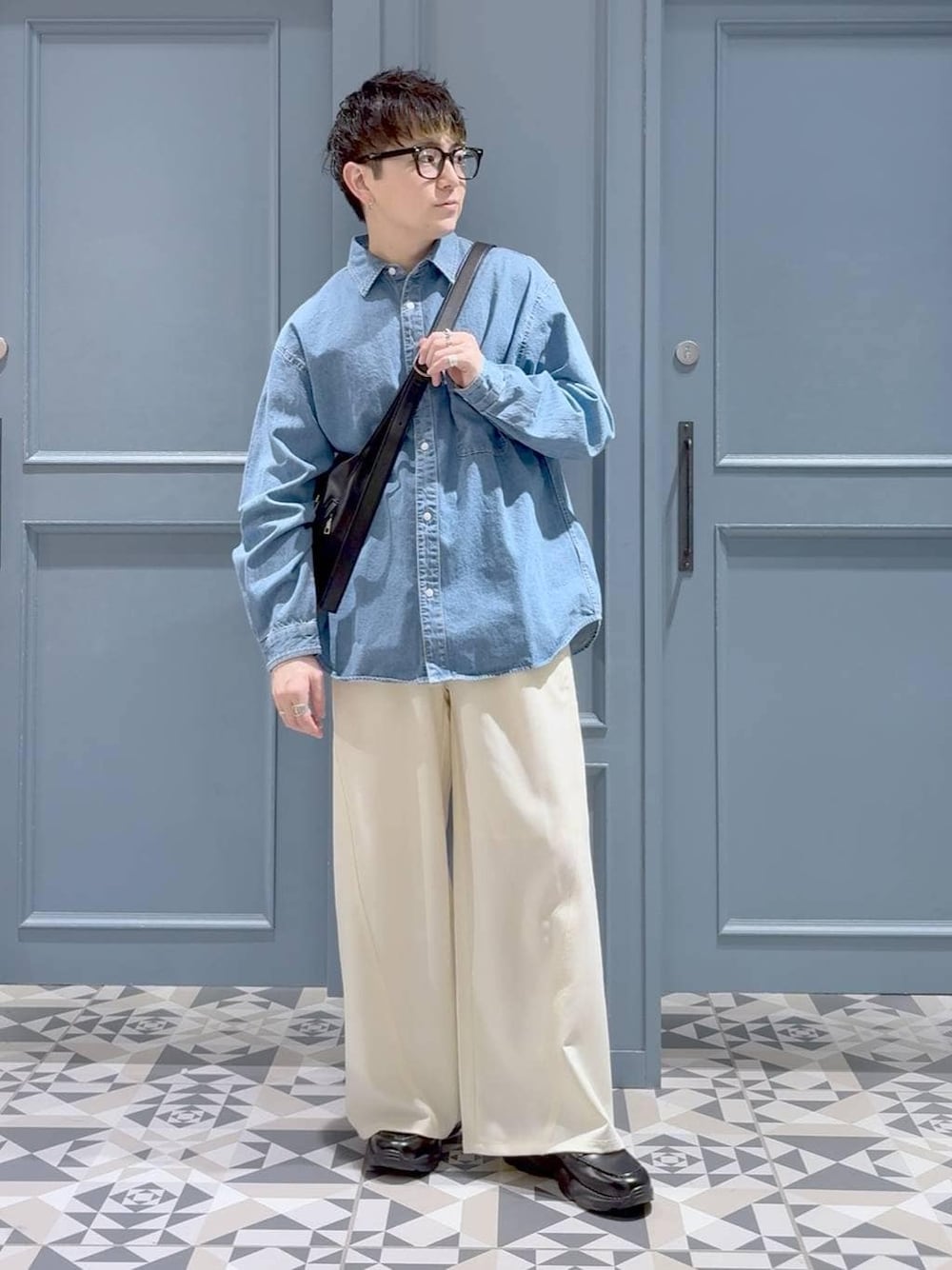 【春カラーコーデ】 ご覧頂きありがとうございます😊 気になるアイテムは“使用アイテム”からチェック☑️☑️☑️ 🔸🔸個人インスタはこちら🔸🔸 ⇒ 🔸🔸個人WEARはこちら🔸🔸 ⇒ ーーーーーーーーーーーーーーー ▪️トップス(Mサイズ着用) フロントポケットにウエスタンデザインをあしらったデニムシャツが登場。 ベーシックなレギュラーカラーを採用しながら、ボタンダウンデザインを配することで、今らしいタイドアップスタイルにも最適。 身幅を大きく取ったオーバーサイズ仕様にすることで、一枚で着ても旬なアウトラインを取り入れられます。 また、背面にはウエスタン調のヨークを重ね縫いし、後ろから見てもスタイリッシュな雰囲気にまとめています。 ▪️パンツ(Sサイズ着用) 緩やかな楕円を描くようなシームが、ユニークな表情を作るワイドスラックス。 シームの曲線が洗練された立体的なシルエットを演出し、上品なドレープ感を作り上げます。 ゆったりとした腿周りから、ストンと落ちるストレートシルエットなので、脚長効果が抜群です。 ウエスト後部にゴムを内蔵することで、タックインスタイルが叶いながらも、着用時のフィット感もサポートします。 ーーーーーーーーーーーーーーー 最後までご覧頂きありがとうございます! 少しでも刺さるものがあったら、フォローお願いします😊😊