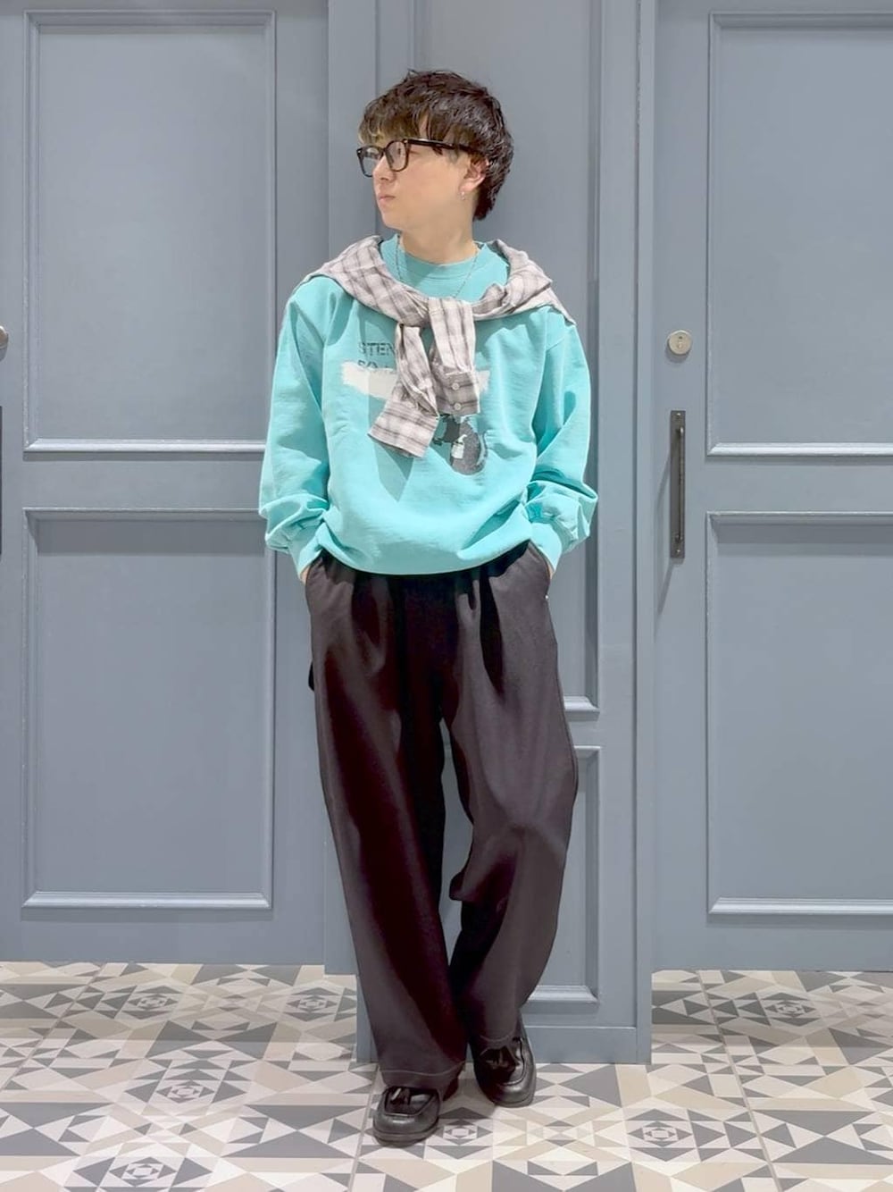 はいね(RAGEBLUE立川ルミネ店)のスラックス「Design Stitch Painter Wide Pants/配色ステッチペインターパンツ【セットアップ対応】」を使ったコーディネート
