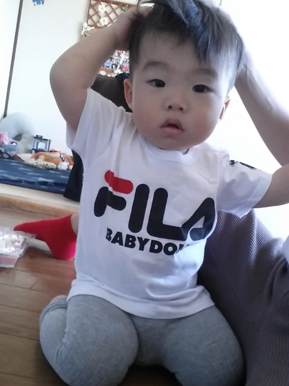 11月やのに暑くて半袖🍍🌵 FILA おそろい🌴 母は ライトオン 息子は ベビードール UNIQLOのリブレギンスが かなり着回せる😌🌺good