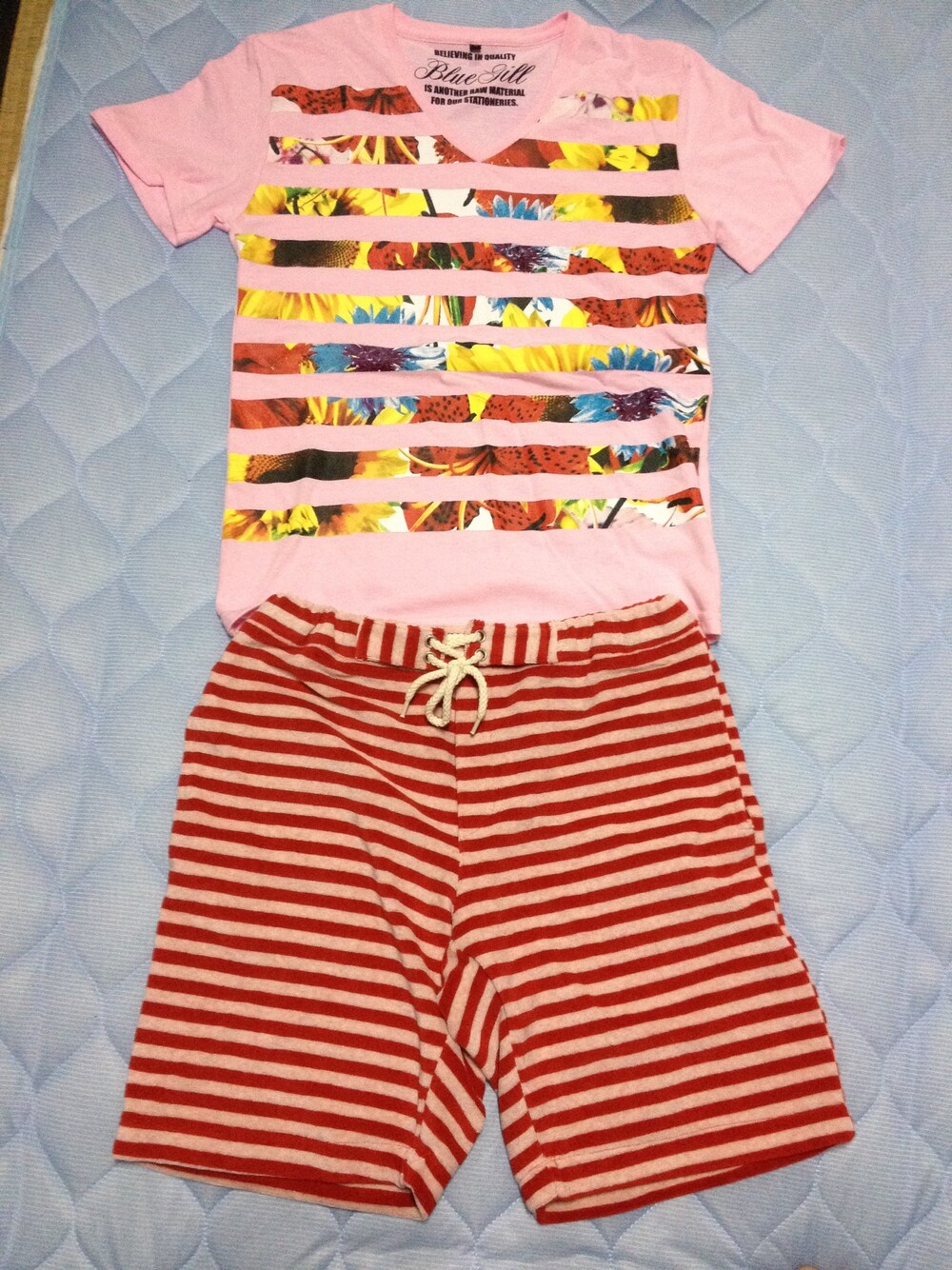 適当楽ちんコーデw 履き心地抜群ボーダーショーツに 花柄ボーダーTシャツw