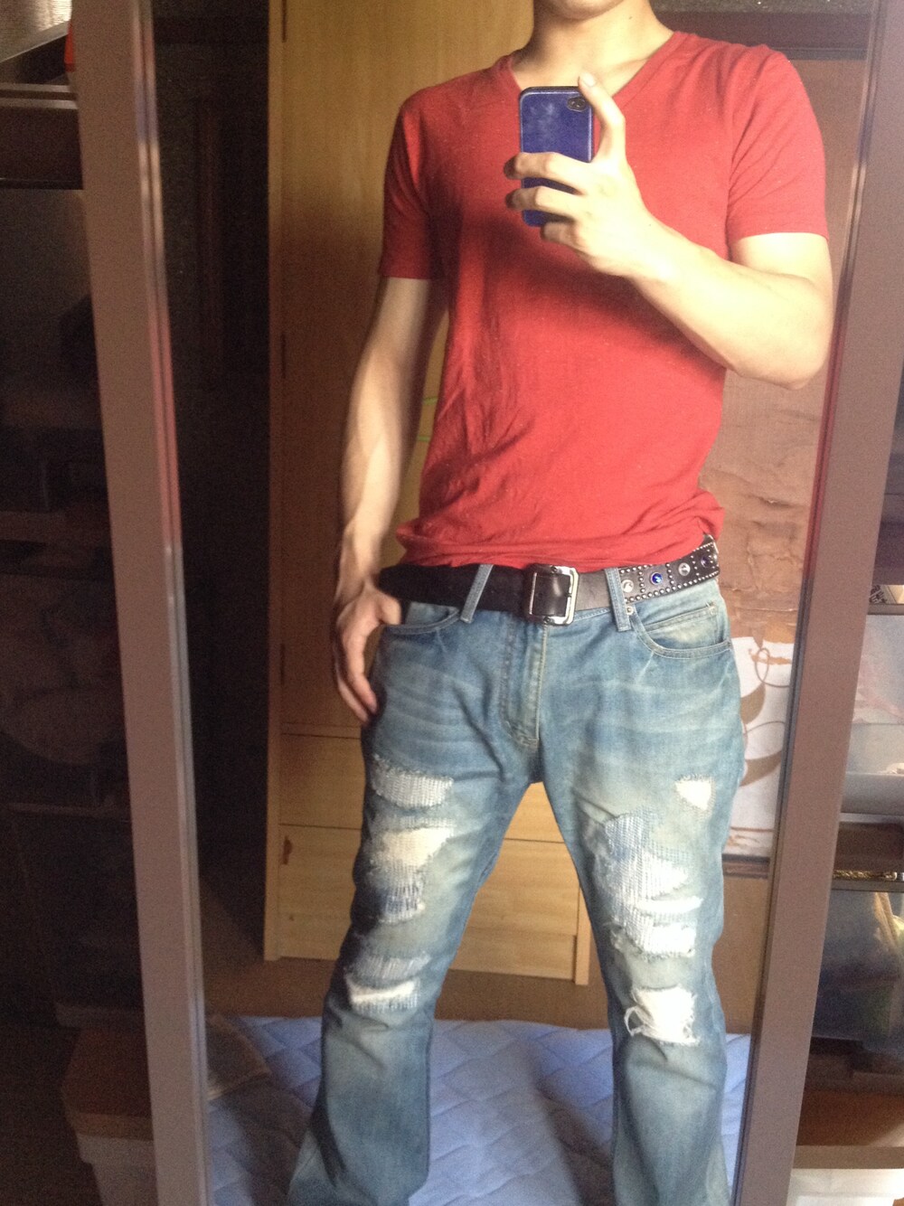 こんにちわ!(^_−)−☆ 絶賛夏バテ絶好調〜〜〜〜( *´艸`) もうね、、自宅では裸族ですwww 毎年です、、はい 今日のコーデはタグ全力スルーでシンプルにw 赤Tはフォローさせてもらってる方から形がキレイと言ってもらえたので調子乗ってシンプルで挑戦w でもシンプル過ぎるのが苦手なのでデニムはダメージにしましたww 靴は白のハイカットにします( *´艸`)