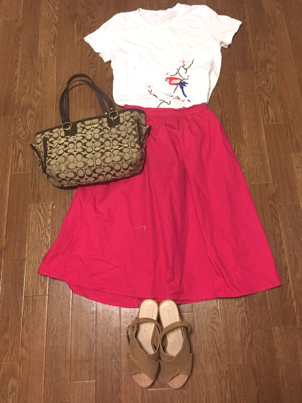 今日は遅ればせながらの母の日のプレゼントを渡しに母宅に行きます。 Tシャツは母からもらった韓国土産。 本当はサッシュベルトでもあればもっと良いんだけど、お腹の肉が乗るのが怖くて手を出せずにいます…