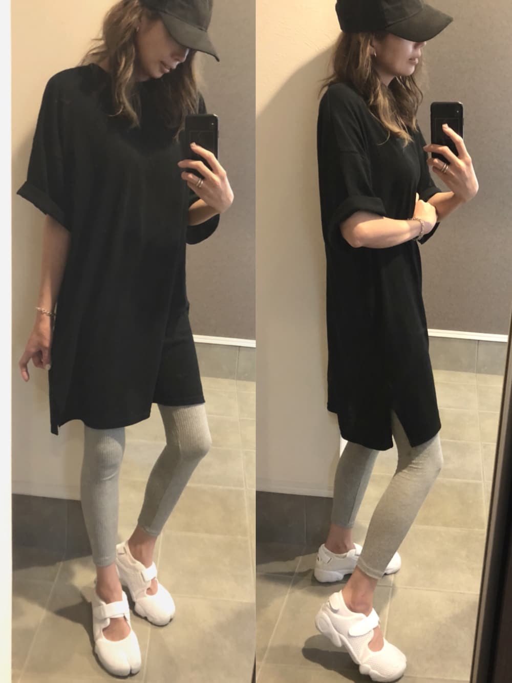 詳細はinstagram→sayaka__sea オーバーサイズのTシャツワンピは、合わせやすい丈と袖の感じもかわいい。