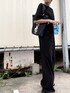 ブラック系のスラックスを着用したレディースの夏コーディネートの2枚目の写真