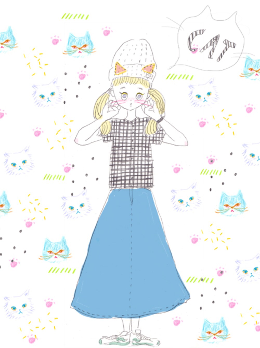 june.07 にくきゅうフェス とってもとっても名前がかわいかったので 参加させていただきます、、♡ カラフルなねこばっかり描いてるけど いちばんすきなのは黒猫です にゃー🐈🐈 ///tops/// BEAMS BOY ///shoes/// NEW BALANCE