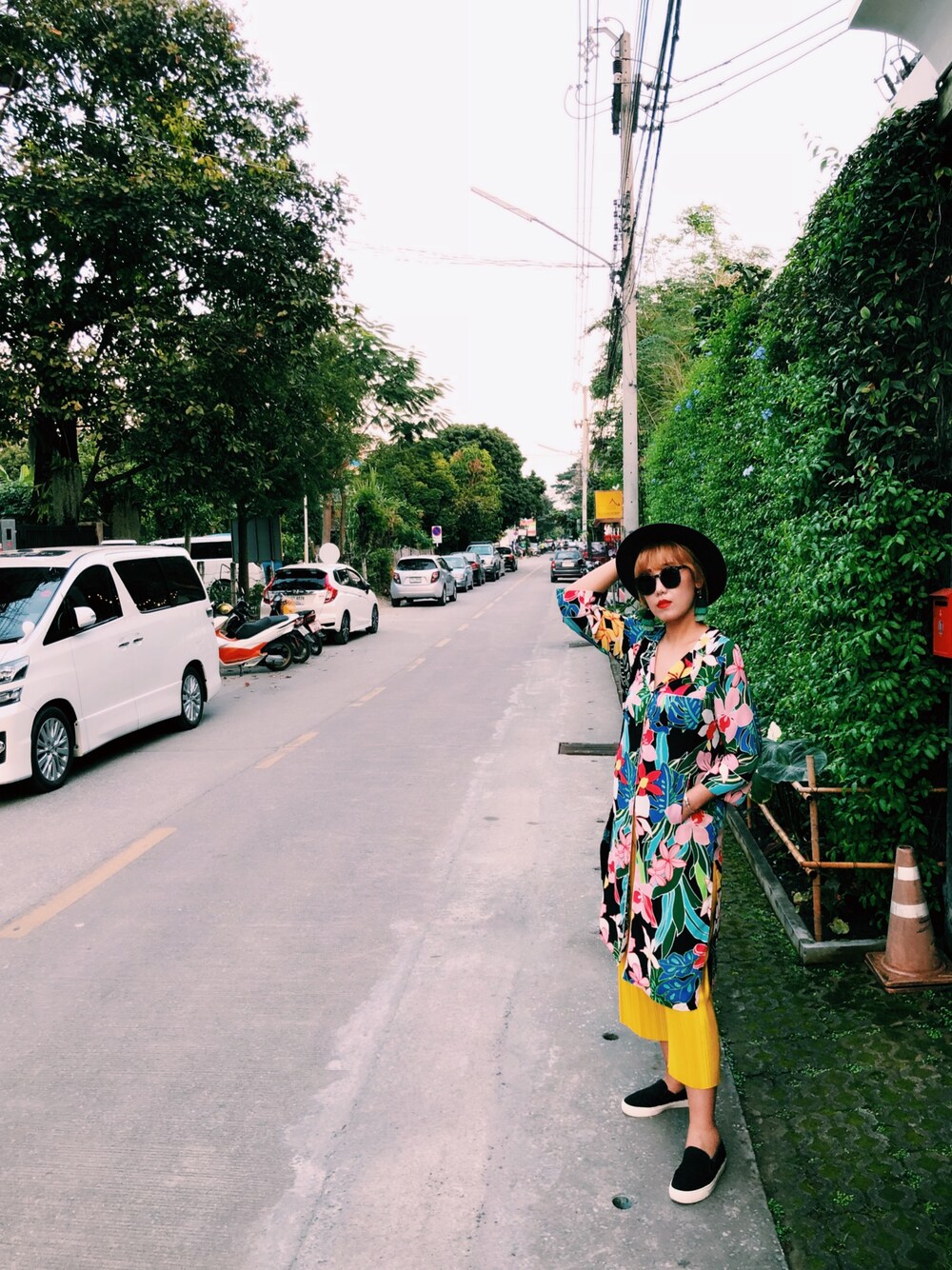 花色的衣服搭配纯色的裤子 不会出现混乱的感觉 反倒是很呼应