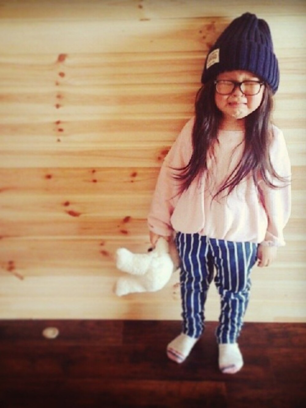 ブラック系のサングラスを着用したキッズの春コーディネートの1枚目の写真