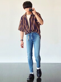 どーもKEIです‼︎ またも再投稿‥お許しを🙏 見てくださりありがとうございます☺️ 今回はLIDNMの新作のストライプデジンオープンカラーシャツを使ったコーデ! 久しぶりに僕らしい着こなしができたかなと思います 【コーデのポイント】 1.トレンドアイテムを使用✨ オープンカラーシャツ ストライプ キーリング 2.中和💫 ・柄シャツをタックインすることにより、カジュアルなアイテム×綺麗目な着こなしにしています。 ・デニム×靴下と革靴(カジュアル×きれいめ) 3.シャツのイエローとドクターマーチンのステッチのイエローで挟みました💫 もしかしたらまた何回か投稿するかもしれませんが、、、許してください🙏 では