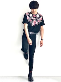 いつも見てくださりありがとうございます☺️ 久しぶりのオールブラックコーデ ZARAのこのTシャツめちゃめちゃお気に入り✨ ‥‥‥‥‥‥‥‥‥‥‥‥‥‥‥‥‥‥‥‥‥‥‥‥‥‥‥‥‥‥ 【コーデのポイント】 1.花柄💐の主張が大きいので、他はシンプルにまとめたこと。 2.あえてウォレットチェーンやキーリング、バングルを使わずにシンプルにまとめたこと💡 3.ハイウェストでタックインをし、足長効果(笑)💫 ‥‥‥‥‥‥‥‥‥‥‥‥‥‥‥‥‥‥‥‥‥‥‥‥‥‥‥‥‥‥ 今週土曜は関東でオフ会があります! まだ募集しているので、参加したい方は僕かジソンかユウくんのInstagramのDMまで! では