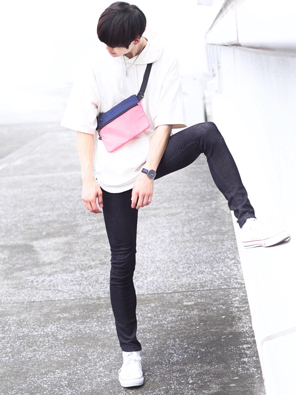 【コーデ日記】 いつも見てくださりありがとうございます☺️ ・トップスとスニーカーの白で挟んで清潔感を出しました! モノクロだけだとつまらなかったので、差し色としてまたサコッシュを使いました!💡 サコッシュは¥2000で買えるし、今割引されているのでオススメです✨ ・また、スキニーパンツも低下¥8000くらいのが40%offになってました!🔥 元値も高い分めっっちゃシルエットが良く、耐久性が高そうです🙆♂️ ・夏はコーデがシンプルになりがちなので、アクセサリー(腕時計・ネックレス・イアリング)を多用してます💡 腕時計のダニウェルウィントンのクーポンコードが発行されてます✨ 15%OFFクーポンコード "kei18" (www.danielwellington.com/jp) よかったら使ってください! ‥‥‥‥‥‥‥‥‥‥‥‥‥‥‥‥‥‥‥‥‥‥‥‥‥‥‥‥‥ 【挨拶】 僕はInstagramとTwitterもやっているのでよかったら見てください☺️ お仕事の依頼などはInstagramのDMにてお待ちしております✨ では!