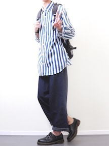 犬飼京 inukai keiのシャツ/ブラウス「キュプラ ストライプ ロング シャツ」を使ったコーディネート