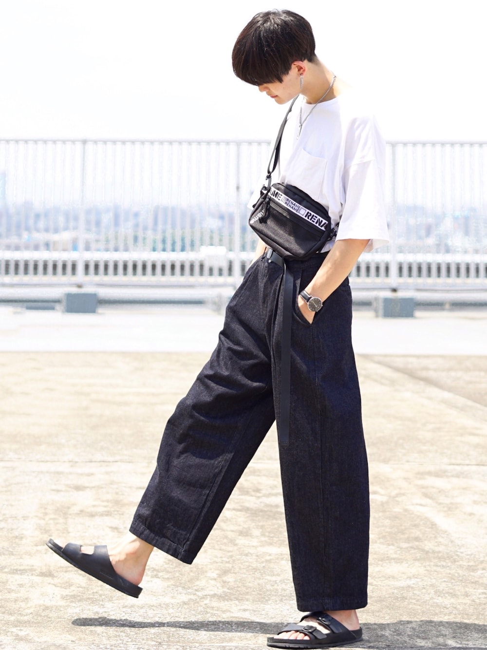 【コーデ日記】 InstagramID☞ 【wear_kei】 いつも見てくださりありがとうございます☺️ 今回も夏のワントーンコーデ!!! シンプルなコーデにはショルダーバッグ・腕時計・ピアス・ネックレスなどの小物が必須ですね!🔥 今年はショルダーバッグなどボディバッグ類がトレンドなので、この夏を身軽に過ごすためにもオススメです✨ ワイドデニムと言えばMONO-MARTですが、これはWEARでもあんまり見かけないブラック! すごくシルエットが良くてお気に入りです♪ ‥‥‥‥‥‥‥‥‥‥‥‥‥‥‥‥‥‥‥‥‥‥‥‥‥‥‥‥‥ 【コーデのポイント】 1.シンプルなので小物を沢山足してお洒落感を上げる努力をしました💡 2. ビックシルエット×ビックシルエットで組むときはタックインがおススメです💡 ↪︎タックインしないとスタイルが悪く見えがちかも 3. トレンドのボディバッグを使いました✨ かわいくてすごくお気に入りです☺️ ‥‥‥‥‥‥‥‥‥‥‥‥‥‥‥‥‥‥‥‥‥‥‥‥‥‥‥‥‥ 【挨拶】 僕はInstagramとTwitterもやっているのでよかったら見てください☺️ お仕事の依頼などはInstagramのDMにてお待ちしております✨ では!