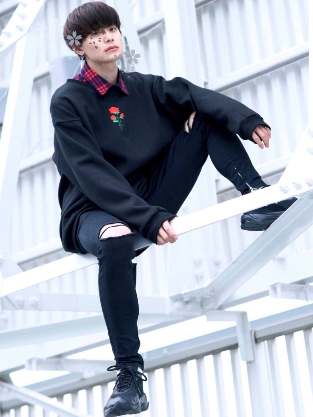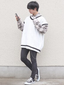 【コーデ日記】 いつもみてくださりありがとうございます🙂 前回に続き、僕の初のコラボ商品のスウェット(ブラック)を使っ韓国コーデ💫 僕として手の施しようの無いほどのお気に入りのスウェットです✨ スウェットの特徴は、、、 1.ワンポイントの薔薇刺繍・背中のジップとMA-1についてそうなタグ(商品のタグから確認してください)✨ 2.ユニセックス(男女兼用)で着れるゆるシルエット💡 3.どんなコーデにも合うシンプルさ and デザインでちょびっと個性💫 ZOZOの商品ページ画像では僕がモデルの写真を使っています笑 商品タグをタップすると確認できます 初のスタジオ撮りで恥ずかしかったけど、良かったら見てみてください🙂 ‥‥‥‥‥‥‥‥‥‥‥‥‥‥‥‥‥‥‥‥‥‥‥‥‥‥‥‥‥ 【コーデのポイント】 1.ブラック×レッドの特徴的な組み合わせ 基本ブラックのみにして、レッドは差し色にすることでバランスを整えてます💡 2.薔薇刺繍のスウェットやダメージスキニー、イアリングを使って韓国コーデ要素をin💫 3.ゆるいスウェット(カジュアル要素)×チェックシャツをえり出し(きれいめ要素)を掛け合わせて中和!💫 ‥‥‥‥‥‥‥‥‥‥‥‥‥‥‥‥‥‥‥‥‥‥‥‥‥‥‥‥‥ 【挨拶】 僕はInstagramとTwitterもやっているのでよかったら見てください☺️ お仕事の依頼などはInstagramのDMにてお待ちしております✨ では!