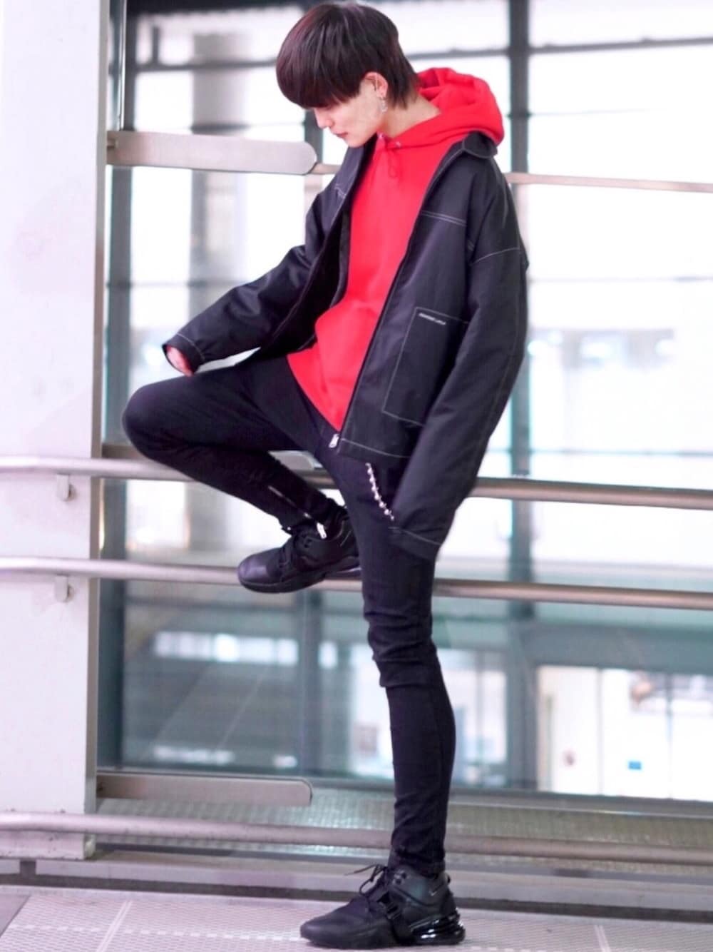 【コーデ日記】 いつもみてくださりありがとうございます☺ 今日は大好きな韓国ブランド『diamondlayla』 の新作、ステッチが入ったコーチジャケットを使ったコーデ💫 オールブラックに差し色で攻めの赤を入れたのがポイント☝️ コーチジャケットの生地に白いステッチ組み込まれていて、内側の生地にはギンガムチェックが使われているというこだわりの強さ!!!🔥 ステッチが入ってるジャケットはトレンドらしいですね💡 さらっと羽織れるので春コーデに良さげだなと思いました🌸 では! ‥‥‥‥‥‥‥‥‥‥‥‥‥‥‥‥‥‥‥‥‥‥‥‥‥‥‥‥‥ 【挨拶】 僕はInstagramとTwitterもやっているのでよかったら見てください☺️ お仕事の依頼などはInstagramのDMにてお待ちしております✨ では!
