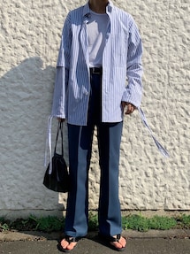 犬飼京 inukai keiのTシャツ/カットソー「【BASQUE -enthusiastic design-】ビッグシルエットマリンボーダーカットソー」を使ったコーディネート