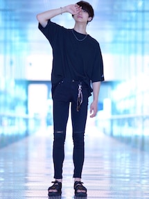 犬飼京 inukai keiのデニムパンツ「COOOPER ダメージジップスキニー」を使ったコーディネート