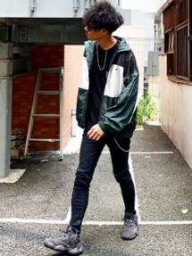 犬飼京 inukai keiのナイロンジャケット「KANGOLプリントトラックジャケット」を使ったコーディネート