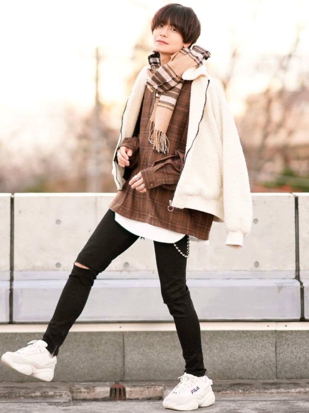 【コーデ日記】 いつもみてくださりありがとうございます☺️ 今日は渾身の秋冬コーデ!✨ 正直言って今月の投稿の中で暫定1位に気に入ってます🔥 なにが気に入ってるかっていうと、なんとなくフィーリングです☺️ でも特に色合いはバランス取れてると思います!💫 白黒(モノトーン)+1色(ブラウン)で、 三色以内に収まってます✨ ※ベージュはブラウンに含みます💡 チェックシャツはADRERの新作アイテムの中で1番人気のアイテムです✨ 生地がそこそこ厚いので、冬のインナーにピッタリです💡 ボアジャケットはtaiのブランドact'mのアイテムで、ホワイトはもう売り切れてました💦 ブラウンは残ってるので、気になる方はぜひチェックしてみてください😎 僕のInstagram👉【@wear_kei】には、このコーデにコートを着て、冬コーデにして投稿するので、よかったら見に来てください☺️ 僕のInstagramでは、毎週発売される【GUの新作】アイテムから僕が厳選して紹介したり、 【1週間黒スキニーコーデまとめ】を投稿したり、 【ニキビを無くすために僕がやってること】などを投稿してます✨ あと僕のデザインするオリジナルブランド【ADRER】の情報も、WEARよりも早く発信してます💡 Instagramにてお待ちしております☺️【@wear_kei】 ‥‥‥‥‥‥‥‥‥‥‥‥‥‥‥‥‥‥‥‥‥‥‥‥‥‥‥‥‥ 【挨拶】 🔥‼️インスタグラムをメインで投稿してます‼️🔥 ▶【︎@wear_kei】◀ ︎🔍検索‼️ 【GUの新作アイテムから厳選紹介】や 【1週間黒スキニーコーデしばり】など 【ニキビを無くためにやってる5のこと】 などなど他にも皆さんに楽しんでもらうための投稿を沢山してます♪ ぜひ暇つぶしに見に来てください☺️ では!