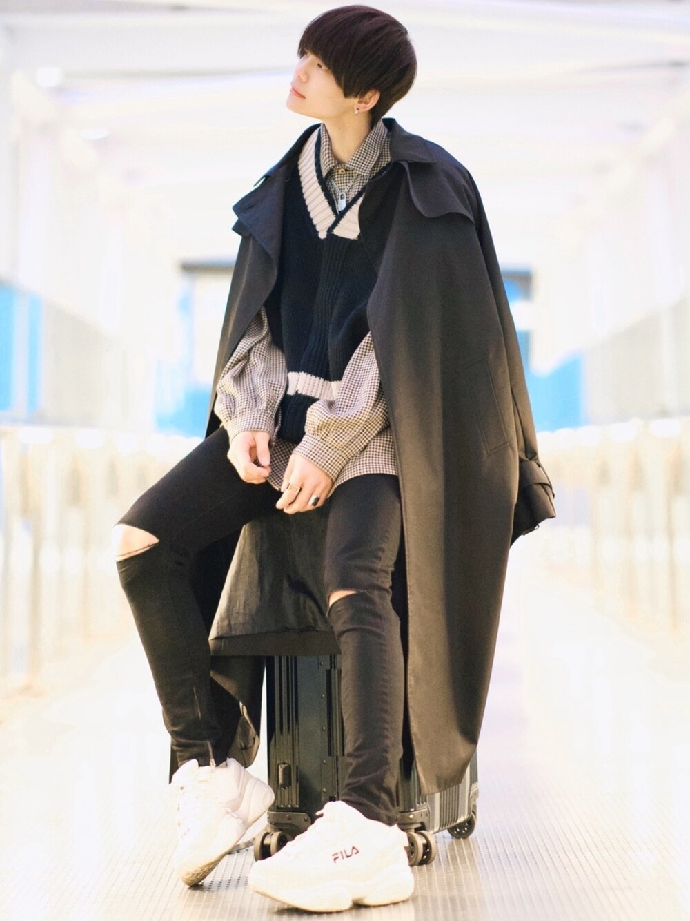 犬飼京 inukai keiのトレンチコート「ADRERオーバートレンチコート」を使ったコーディネート