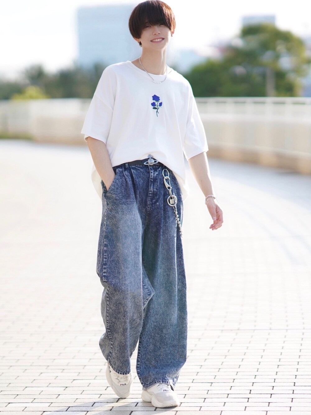 【コーデ日記】 いつも見てくださりありがとうございます☺️ 今日のコーデはバラシシュウビッグTシャツと 6/6(土)に発売のADRER新作『ヴィンテージメイクワイドテーパードデニム』 を使ったコーデ!✨ デニムは【王道の夏アイテム】ですよね!😊 白Tや黒Tなどシンプルなアイテムとも相性抜群です!🙆♂️ 「くすみカラー・レトロファッション・ビッグシルエット」といったトレンド満載の最高のアイテムに仕上がってます!💡 今日、Instagramで新作デニムのサイズ表などのまとめ投稿をするので楽しみにしててください!🔥 撮影した場所はお台場です!🐳 天気もよく、人も少ないのもあって撮影日和でした!☀️ フォロワーさんの写真部の部長さんにたくさんいい写真を撮ってもらいました!📸 ありがとう😊 そして、TシャツはバラT! 最近フォロワーさんから沢山の嬉しいメッセージや写真をもらえて毎日嬉しいです✨ ZOZOでもずっとランキングの上位にいれてありがたいことです🙏 そして!!!!!!!!!!!!!!! 僕のInstagramでは、毎週発売される【GUの新作】アイテムから僕が厳選して紹介したり、 【1週間黒スキニーコーデまとめ】を投稿したり、 【ニキビを無くすために僕がやってること】などを投稿してます✨ あと僕のデザインするオリジナルブランド【ADRER】の情報も、WEARよりも早く発信してます💡 Instagramにてお待ちしております☺️【@wear_kei】 ‥‥‥‥‥‥‥‥‥‥‥‥‥‥‥‥‥‥‥‥‥‥‥‥‥‥‥‥‥ 【挨拶】 🔥‼️インスタグラムをメインで投稿してます‼️🔥 ▶【︎@wear_kei】◀ ︎🔍検索‼️ 【GUの新作アイテムから厳選紹介】や 【1週間黒スキニーコーデしばり】など 【ニキビを無くためにやってる5のこと】 などなど他にも皆さんに楽しんでもらうための投稿を沢山してます♪ ぜひ暇つぶしに見に来てください☺️ では!👋