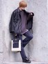 犬飼京 inukai keiのライダースジャケット「Synthetic leather over double riders jacket/シンセティックレザーオーバーダブルライダースジャケット」を使ったコーディネート