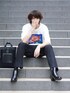 犬飼京 inukai keiのTシャツ/カットソー「Heavy cotton flower big T-shiet/ヘビーコットンフラワーグラフィックTシャツ」を使ったコーディネート