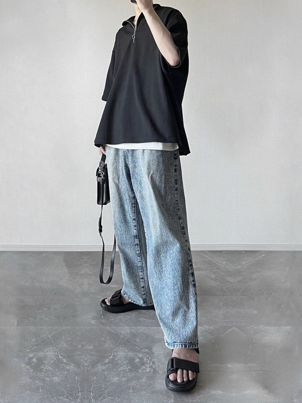 『2024年量産されそうな夏コーデ』 黒のTシャツなら例年通りの量産型ですよね ハーフジップかポロシャツが今年の定番スタイル☑️ 着とけば間違い無いです。 ⠀