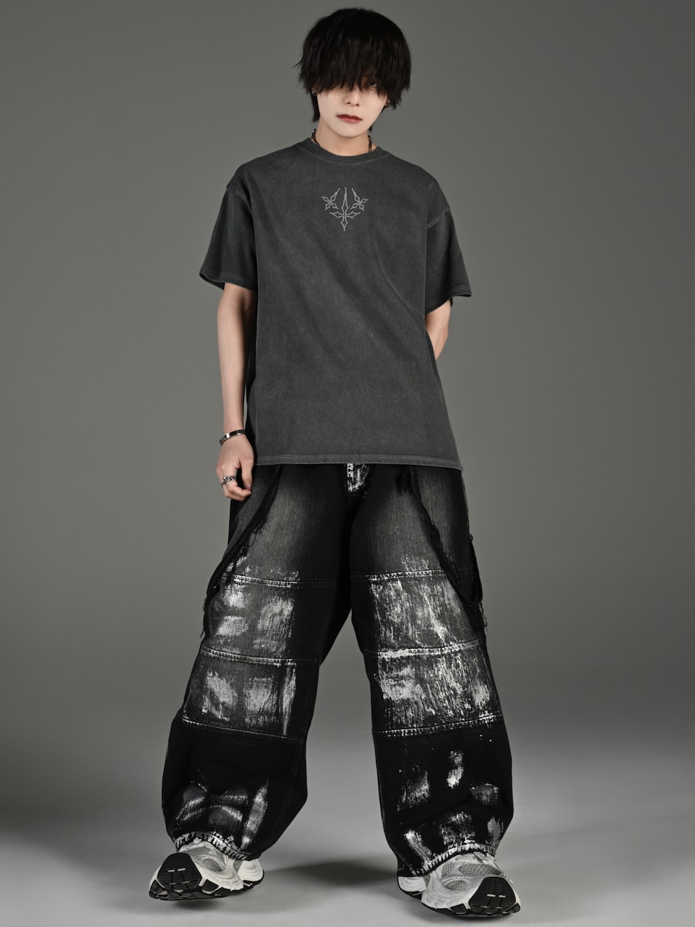 犬飼京 inukai keiのデニムパンツ「panel suspender wide denim (waist gom) / パネルサスペンダーワイドデニム(ウエストゴム)」を使ったコーディネート