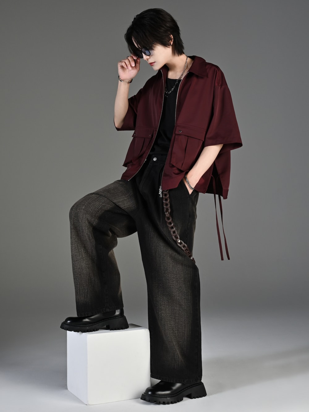 犬飼京 inukai keiのデニムパンツ「vintage make wide tapered denim / ヴィンテージメイクワイドテーパードデニム」を使ったコーディネート