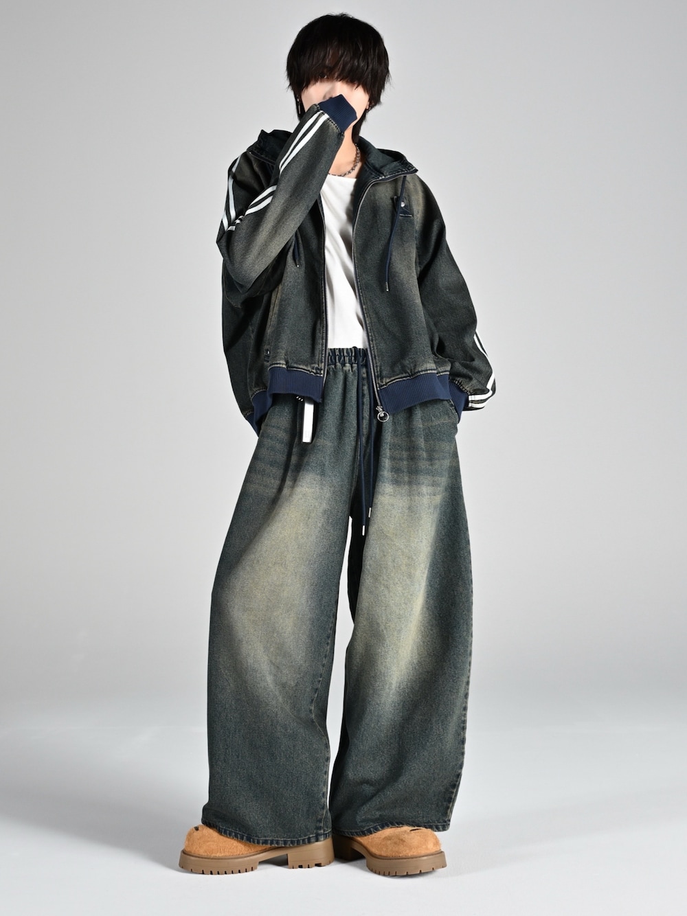ご覧くださりありがとうございます☺︎ ⠀ ADRERの25AW第一弾! ⠀ 8月20より遂にはじまります... ⠀ ⠀ ⠀ そんな第一弾ラインナップから組んだコーデ🫶 ⠀ WEARではどのSNSよりも先にコーデとラインナップ詳細を公開しちゃいます👇 ⠀ ⠀ ⠀ ▼全ラインナップ・アイテム詳細▼ ⠀ —————————— ⠀ㅤ ①初回1000枚。25aw記念の特別アイテム ⠀ ⠀ 狼のグラフィックを大胆に刺繍し、 リバーシブルでは花の総柄を施しました。 ⠀ 袖部は合成皮革のラインスリーブで仕上げた まさにADRERらしい唯一無二の逸品。 ㅤ ㅤ ▪︎premium reversible suka jumper -wolf/flower- ¥11,000(tax-in) black ㅤ ㅤ ㅤ ②待望の再販 × 新色2色登場! ㅤ ⠀ 春に即完した2色のトラックジャケット 鳴り止まない再販リクエストにより復活!! さらになんと価格そのままにして 合皮とデニムの2色が登場!!! ㅤㅤ ▪︎line sleeve track zip parker jacket ¥8,800(tax-in) 合皮 / denim / black(再販) / white(再販) ㅤ ㅤ ㅤ ③最強のトラックパンツに新素材追加! ㅤ ㅤ 通年履けるパンツは在庫を切らさず大好評販売中。 ⠀ ジャケットと同じくなんと合皮とデニム生地を 価格そのまま追加させていただきます! ⠀ これが思わぬ傑作に仕上がりました ⠀ ⠀ ▪︎ line track wide slacks ¥6,600(tax-in) 合皮 / denim ㅤ ㅤ ㅤ ④遂に復活!!待望の再販を新色で行います。 ㅤ ㅤ 遡ること春、販売のたびに即完してきた新型シャツ 1年中着れて尚且つ着回し力も最強 ⠀ ブラストデニムとホワイトストライプ 形も素材も柄も全てがトレンド! 今激推ししたい神品番です。 ⠀ ⠀ ▪︎over size shirt parker ¥5,940(tax-in) blast denim / white stripe ㅤ ㅤ ㅤ ⑤新色、究極の1本が完成。 ㅤ ㅤ これだけデニムが流行ってる市場でも珍しい 泥染加工のような色味・風合いと落書き ⠀ ADRERで最も歴史が長く 僕が一番信頼してる定番デニムパンツから 全く新しい新色が誕生しました。 ⠀ ⠀ ▪︎ vintage make wide tapered denim ¥6,600(tax-in) mud graffiti ㅤ ㅤ ——————————— ⠀ ⠀ これが25AW第一弾にまずはじめに手にとって欲しいと思い用意した最高傑作。 ⠀ 『全色は難しくとも全型手にとって欲しい』 ⠀ その思いです。 ⠀ ⠀ ⠀ 発売まであと2週間 お楽しみに。