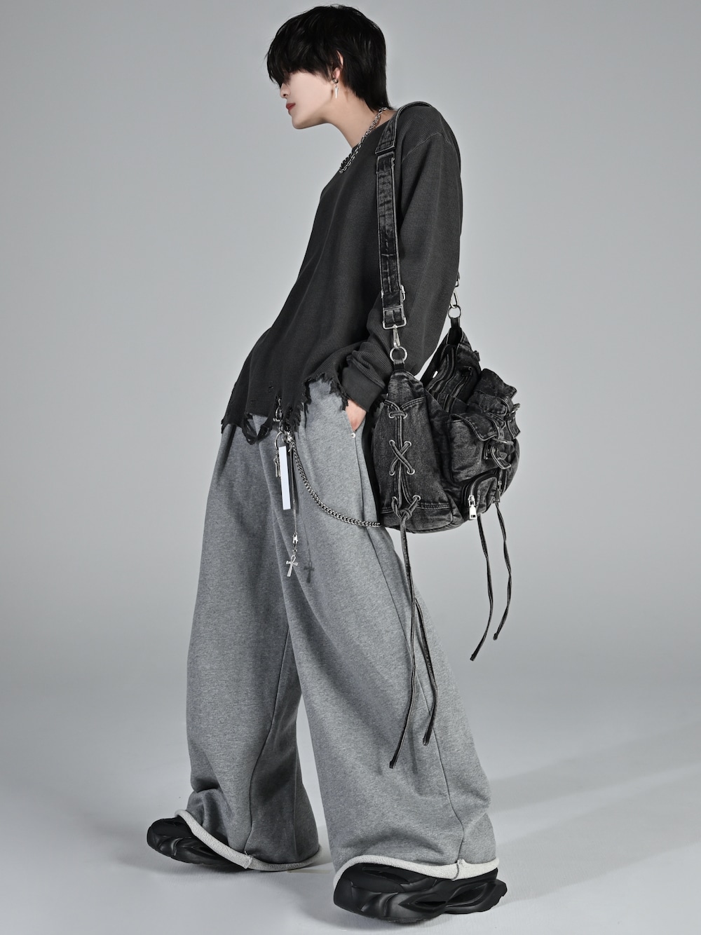 犬飼京 inukai keiのTシャツ/カットソー「waffle damage long-T / ワッフルダメージロンT」を使ったコーディネート