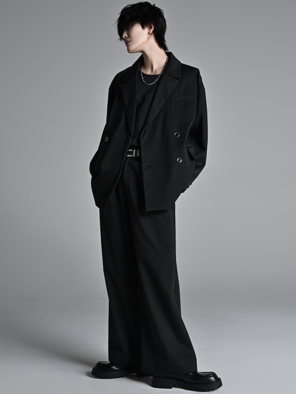 犬飼京 inukai keiのテーラードジャケット「TR w cloth loose tailored double jacket / TRダブルクロスルーズテーラードダブルジャケット」を使ったコーディネート